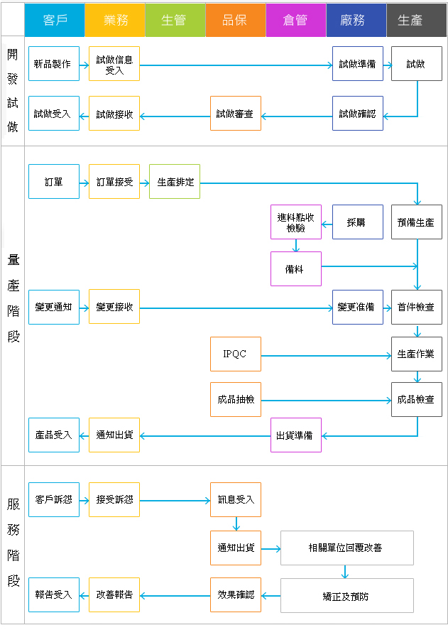 產品實現之規劃應與品質管理系統規劃結合,有關品質管理系統運作及各系統各作業之相互關係是確定經過事前規劃後展 開,方法如< 品質系統流程管理模式圖>及<品質保證體系圖> ,以符合系統持續改善及各項品質目標要求。